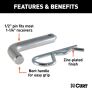 The job of a hitch pin is incredibly important in towing, and for this reason, CURT hitch pins and clips are made to be of the utmost quality, providing you with reliable security for your trailer and cargo. CURT 1/2" hitch pins measure a full half inch in diameter and are constructed from solid steel. This helps ensure they have the strength they need to serve your towing needs. Our 1/2" pins are available in a number of finishes to give you options for your specific vehicle and trailer hitch. This 1/2" hitch pin features a zinc finish and comes with a standard retainer hole to accept the included clip. All CURT 1/2" pins come with a 105-degree bend, making them easier to handle and operate when mounting your ball mount. 1/2" hitch pins will fit any CURT ball mount or hitch-mounted accessory with a 1-1/4" shank.