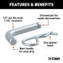 The job of a hitch pin is incredibly important in towing, and for this reason, CURT hitch pins and clips are made to be of the utmost quality, providing you with reliable security for your trailer and cargo. CURT 1/2" hitch pins measure a full half inch in diameter and are constructed from solid steel. This helps ensure they have the strength they need to serve your towing needs. Our 1/2" pins are available in a number of finishes to give you options for your specific vehicle and trailer hitch. This 1/2" hitch pin features a zinc finish and comes with a groove that allows the clip to be inserted at any angle. All CURT 1/2" pins come with a 105-degree bend, making them easier to handle and operate when mounting your ball mount. 1/2" hitch pins will fit any CURT ball mount or hitch-mounted accessory with a 1-1/4" shank.