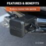 If you own a vehicle with a trailer hitch, you know how quickly the receiver tube can get built up with dirt, debris and road grime. It does not take long before inserting a ball mount or hitch-mounted accessory into your trailer hitch becomes more difficult than it should ever have to be. With enough time and moisture exposure, the inside of a receiver tube can become seized up with rust, making it very difficult to use. Keep your trailer hitch's receiver tube clean and protected when not towing with one of CURT's attractive and durable tube covers. This CURT 2" x 2" receiver tube cover is constructed from quality rubber and mounts on your trailer hitch with a friction fit, meaning no hitch pin or clip is required. At CURT, we want to give you a complete towing solution and that includes providing you with the products necessary to maintain your towing equipment. Defend your trailer hitch from the harsh elements with a CURT trailer hitch cover.
