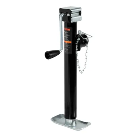 In our goal of being your best source for all things towing, the CURT line of trailer jacks is designed with care and manufactured with pride. CURT jacks are made with quality to promote the life and function of your trailer, and they come in several different styles to accommodate your needs, whether you are a frequenter of the boat landing, the campground, the racetrack or the field. CURT swivel jacks get their name from the pull-pin swivel feature that allows the jack to pivot on its mounting bracket and swing up and out of the way for travel. Our swivel trailer jacks are broken into two categories: pipe mount and bracket mount. This CURT pipe mount swivel jack features a support capacity of 5,000 lbs., a lift capacity of 3,000 lbs. and a travel of 15". With a jack foot plate welded on the bottom, this type of jack also provides added stability for your trailer on rough terrain. It comes with a side-wind handle and includes a weldable pipe with a 5/8" hole for secure mounting. It does not matter what kind of trailer you tow -- a boat trailer, utility trailer, livestock hauler or recreational vehicle trailer -- if you have a receiver-style trailer, you will want a jack that complements its function. For a trailer jack that will not steer you wrong, CURT has the answer.