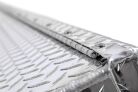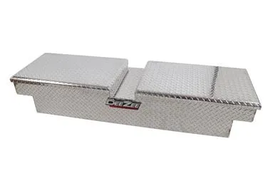 Dee Zee Tool Box - Red Label Double Lid (Gull Wing) Crossover. Constructed of heavy duty Brite-Tread aluminum. Crown style lid for superior rigidity. Other features: lockable stainless steel paddle handles, dampened gas shocks, closed cell foam gasket, and self-adjusting strikers. Removable plastic tool tray to help keep small items organized.
