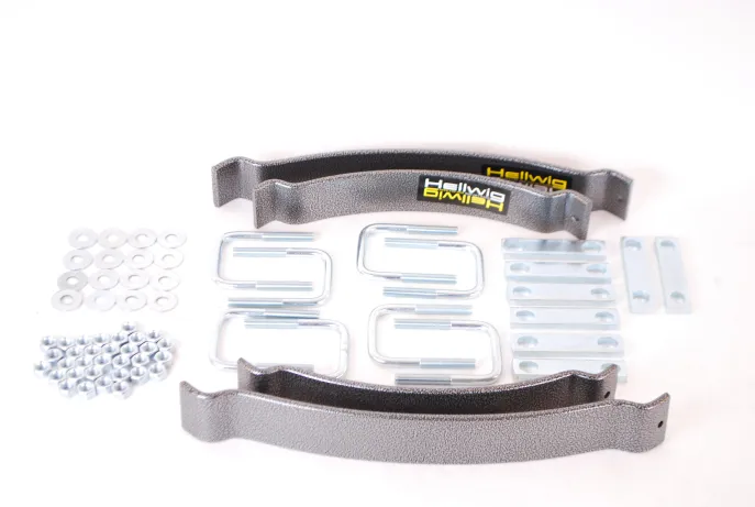 The Hellwig LP-15 helper spring line fits the Mid-size and Small pick-up groups. Manufactured with heat treated ASTM 5160 alloy spring steel in our California based facility, these units increase your vehicles level load carrying capacity up to the manufacturer?s Gross Vehicle Weight Rating. Featuring heavy duty components and easy to read installation instructions this helper spring line-up does a lot of work for its size. Simple bolt on design using common hand tools provide the installer ease of installation and the vehicle owner hassle free use. Packaged in one kit, this unit comes complete with plated and powder coated components, spring leaves, heavy duty hardware and installation instructions to make this unit easy to install and use. Fine tune your vehicle?s leaf spring suspension to suit your particular needs by adjusting the heavy duty U-bolts provided. If your tow and haul needs change, simply adjust the heavy duty U-bolts to suit the new requirement. Once installed and adjusted you are free to haul and/or tow a multitude of equipment and commodities with greater control and stability.