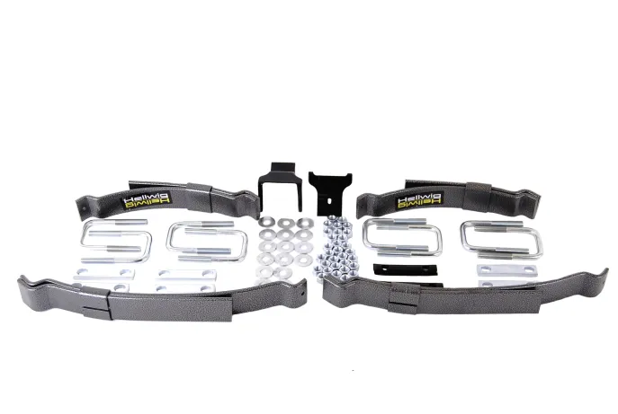 The Hellwig LP-15 helper spring line fits the Mid-size and Small pick-up groups. Manufactured with heat treated ASTM 5160 alloy spring steel in our California based facility, these units increase your vehicles level load carrying capacity up to the manufacturer?s Gross Vehicle Weight Rating. Featuring heavy duty components and easy to read installation instructions this helper spring line-up does a lot of work for its size. Simple bolt on design using common hand tools provide the installer ease of installation and the vehicle owner hassle free use. Packaged in one kit, this unit comes complete with plated and powder coated components, spring leaves, heavy duty hardware and installation instructions to make this unit easy to install and use. Fine tune your vehicle?s leaf spring suspension to suit your particular needs by adjusting the heavy duty U-bolts provided. If your tow and haul needs change, simply adjust the heavy duty U-bolts to suit the new requirement. Once installed and adjusted you are free to haul and/or tow a multitude of equipment and commodities with greater control and stability.