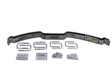 Hellwig's medium-duty EZ-990 Helper Springs pack a lot of capability in every box. Packaged complete with the same heavy duty powder coated and plated components, hardware and installation instructions as our heavy duty helper spring products, these kits are designed for the vehicles that need lighter assistance in carrying a load. Simple bolt on design using common hand tools provide the installer ease of installation and the vehicle owner hassle free use. Ideally suited for light towing and loads, these units are fully adjustable using the heavy duty U-bolts included in the kit using simple hand tools. If your tow and haul needs change, simply adjust the heavy duty U-bolts to suit the new load requirements. Once installed and adjusted you are free to haul or tow with greater control and stability. Manufactured with heat treated ASTM 5160 alloy spring steel in our California based facility, these units are rated up to 2,000 lb. level load carrying capacity. They are a great cost effective spring solution and can be adjusted independently for uneven side to side loads.