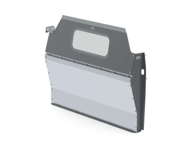 Contoured partition, tempered glass window, aluminum