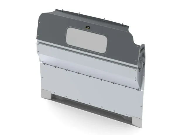 Contoured partition, tempered glass window, aluminum, Ram ProMaster