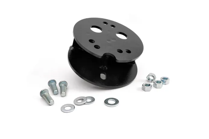 Don t hit the road without a full-size spare! Rough Country's Rear Tire Carrier Spacer gives your Jeep Wrangler the ability to carry a larger aftermarket tire and wheel on the rear of your vehicle. This easy-to-install design fits any tire/wheel combo up to 33-inches, allowing you to always have a full size spare at your disposal.This durable spacer features 1/4-inch plate steel construction, laser cut and robot welded for a precise fit and unyielding quality. This spacer is easy to install, featuring a 100% bolt-on installation procedure that can have your 5th wheel up and running in no-time flat!This unique Tire Carrier Spacer works with both 5x5 and 5x4.5 bolt patterns, suitable for Jeep JK, TJ, and YJ. It also works with Rough Country's TJ/JK Wheel Adapters for even more functionality. Includes Rough Country's lifetime replacement guarantee.