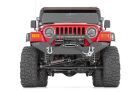 Get tried and true protection with modern good looks with Rough Country's Heavy Duty Front Bumper for Jeep TJ and YJ. This heavy-duty design offers incredible coverage with a sleek profile. This durable front bumper is made of 5/32-inch steel for serious durability and comes coated in a corrosion-resistant, textured black powdercoat to withstand the elements. This product also features a convenient winch mounting plate and fairlead access to run any standard sized-winch. Rough Country's Heavy Duty front bumper includes a set of D-ring mounts welded inside and out for superior strength. Also includes a set of D-rings for easy winching or recovery in off-road environments.