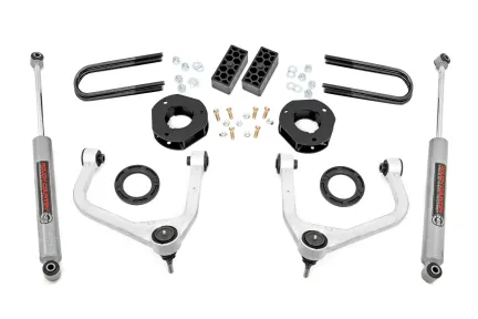 Explore New Heights: GM's fourth-generation Silverado 1500 features an impressive all-new design that s built from the ground up, with aggressive angles and head-turning stylings that fit in beautifully when transformed with Rough Country's 3.5-inch Suspension Lift. Innovative Design and Construction: When changing a vehicle's suspension, the key to preserving ride quality is keeping the geometry of all suspension components as close to their factory angles as possible. Rough Country's 3.5in lift features a set of forged aluminum upper control arms to provide the correct suspension geometry in our most durable control arm to date! This perfect-height lift is a great choice for anyone who wants more than a simple level but doesn't t quite want the full height of a 6-inch option. This kit lifts and levels the front of the vehicle with the rear, offering enough increased ground clearance to run up to 33" tires with an improved, aggressive look. We didn't want to limit you to one standard kit. Rough Country's 3.5-inch kit is configurable with all the shock options that we offer. This allows you to choose which shock series you want! Ranging from our nitrogen-charged N3 shocks to our Vertex reservoir shocks the power to choose is in your hands. Installation: Requiring the use of a strut compressor to install, an estimated timeframe of 5-6 hours is recommended to complete this full installation. This full kit can be installed at home and can be completed efficiently and quickly! Limited Lifetime Replacement Warranty: Rough Country's 3.5" Suspension Lift Kit is backed with a limited lifetime replacement warranty towards manufacturer defects. As such, the product is protected from structural and workmanship damage after the date of purchase. With our industry-leading warranty give yourself peace of mind when using Rough Country's Suspension products!