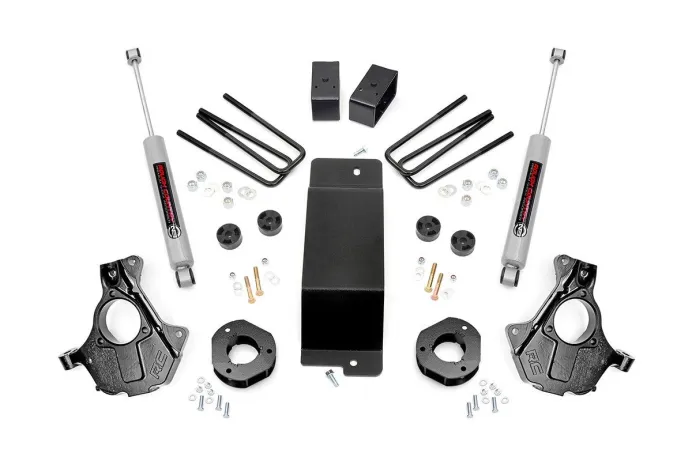 Strike the Perfect Balance: Not too tall, not too small-Rough Country's 3.5" Lifted Knuckle Kit delivers the ideal blend of aggressive looks, enhanced ground clearance, and everyday drivability. Whether you're hitting the trails or cruising the highway, this all-inclusive lift kit gives your vehicle a bold stance and the performance to match. Advanced Suspension Engineering: This kit features precision-engineered lifted knuckles that retain your factory suspension components for dependable, hassle-free installation. Unlike standard kits that can expose your CV axle boots to stress and wear, Rough Country's knuckle design repositions the CV axle for improved clearance from the lower control arm-dramatically reducing boot fatigue and protecting your drivetrain. Factory Rake Eliminated: Achieve a commanding, level profile with a front-to-rear stance that eliminates the factory rake. This not only enhances aesthetics but also improves your vehicle's balance for confident handling on and off the road. Built to Go the Distance: Fabricated rear lift blocks outlast cast alternatives with superior strength and corrosion resistance. Whether you're tackling rocky trails or hauling gear, these rugged components are made to endure. Tailored Ride Performance: This kit includes Rough Country's premium N3 shocks-10-stage variable valving, nitrogen-charged for the perfect fusion of off-road performance and on-road comfort. Want more? It's fully configurable with Rough Country's full lineup of shocks and struts, including the high-performance Vertex reservoir upgrade. Peace of Mind Included: Rough Country backs this kit with a Limited Lifetime Replacement Guarantee, ensuring your suspension is ready for whatever comes next.