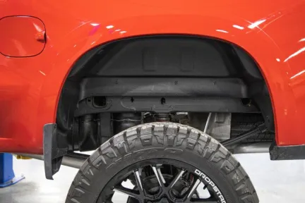 Give your rear wheel wells superior protection and a striking, new look with Rough Country's Rear Wheel Well Liners. Made of high-density Polyethylene plastic, these durable liners help conceal the unsightly gap between the body and frame which is more noticeable after lifting. The stylish, contoured design is perfectly tailored for a precise fit to your truck, while the all-black finish helps bring an aggressive look to the rear of your vehicle.Rough Country Rear Wheel Well Liners offer an extra barrier of protection to help shield your wheel wells from rocks, mud, salt, and harsh weather. With all the small, hard to clean areas covered, cleanup is fast and simple.Installation is easy too! Rough Country Rear Wheel Well Liners feature a bolt-on installation process that's easy enough to do with common tools in a home garage.