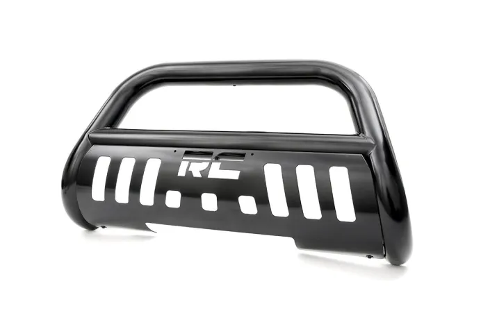 It's the ultimate combination of form and function with Rough Country's durable, new Bull Bars. Protect the front end of your truck with our beefy yet stylish Bull Bar kit. Featuring a 3-inch diameter tube design and corrosion-resistant finish, this Bull Bar package offers superior protection from hazards of the road and trail. Choose black or stainless and compliment the look of your vehicle with this eye-catching add-on. Features pre-drilled holes to easily add additional lighting. Rough Country's Bull Bars are easy to install, with a 100% bolt-on installation process that's easy enough to be done in a home garage with common tools. Each set of Rough Country Bull Bars is backed by Rough Country's 5-Year Warranty.