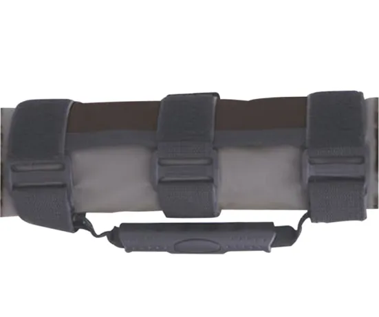 Cramp killer sport handles are universal and adjustable. With the hook and loop attachment these handles fit round or square bars - 2" to 5" diameter. Use anywhere for assess or stability with a durable 1.5-inch nylon webbing with closed cell foam 'comfort grip' handle. Unique, flexible 4-inch wraparound backing plate adds rigidity and prevents bunching which improves handle pull strength.