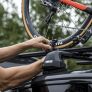 Premium fork mount roof bike rack for the bike enthusiast with fast and easy mounting for both Thru-axle and standard Quick-release bikes.