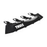 Wind fairing that redirects airflow over roof rack for a quieter ride.
