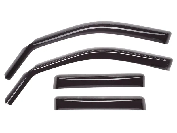 WeatherTech Side Window Deflectors offer you fresh air enjoyment with an original equipment look. They are crafted in Germany from the finest 3mm lightly-tinted acrylic material available. Installation is quick and easy, with no exterior tape needed. WeatherTech Side Window Deflectors are precision-machined to perfectly fit your vehicle. These low profile window deflectors help to reduce wind noise and allow interior heat to escape. Also available in dark tint for most vehicles.