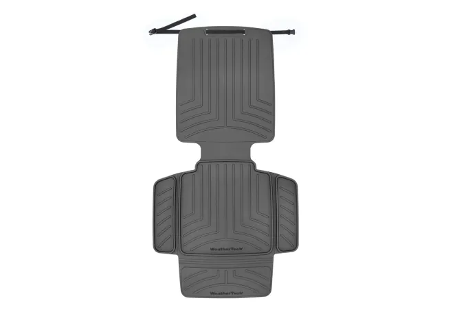 Without the WeatherTech Child Car Seat Protector, your car's upholstery doesn't stand a chance from the wear and tear kids and their seats put on it. Child Car Seat Protector provides protection against spills, crumbs and compression damage on your fabric or leather. A high-quality construction ensures your kid's clasped-down seats and hard edges don't permeate your leather or stretch your cloth interior. A front flap falls over the edge of the seat for extra coverage. An anti-skid surface on the top and bottom helps prevent slipping and sliding. Contoured to your vehicle seat to provide essential protection. Side flaps are trimmable to custom-fit your area of protection.